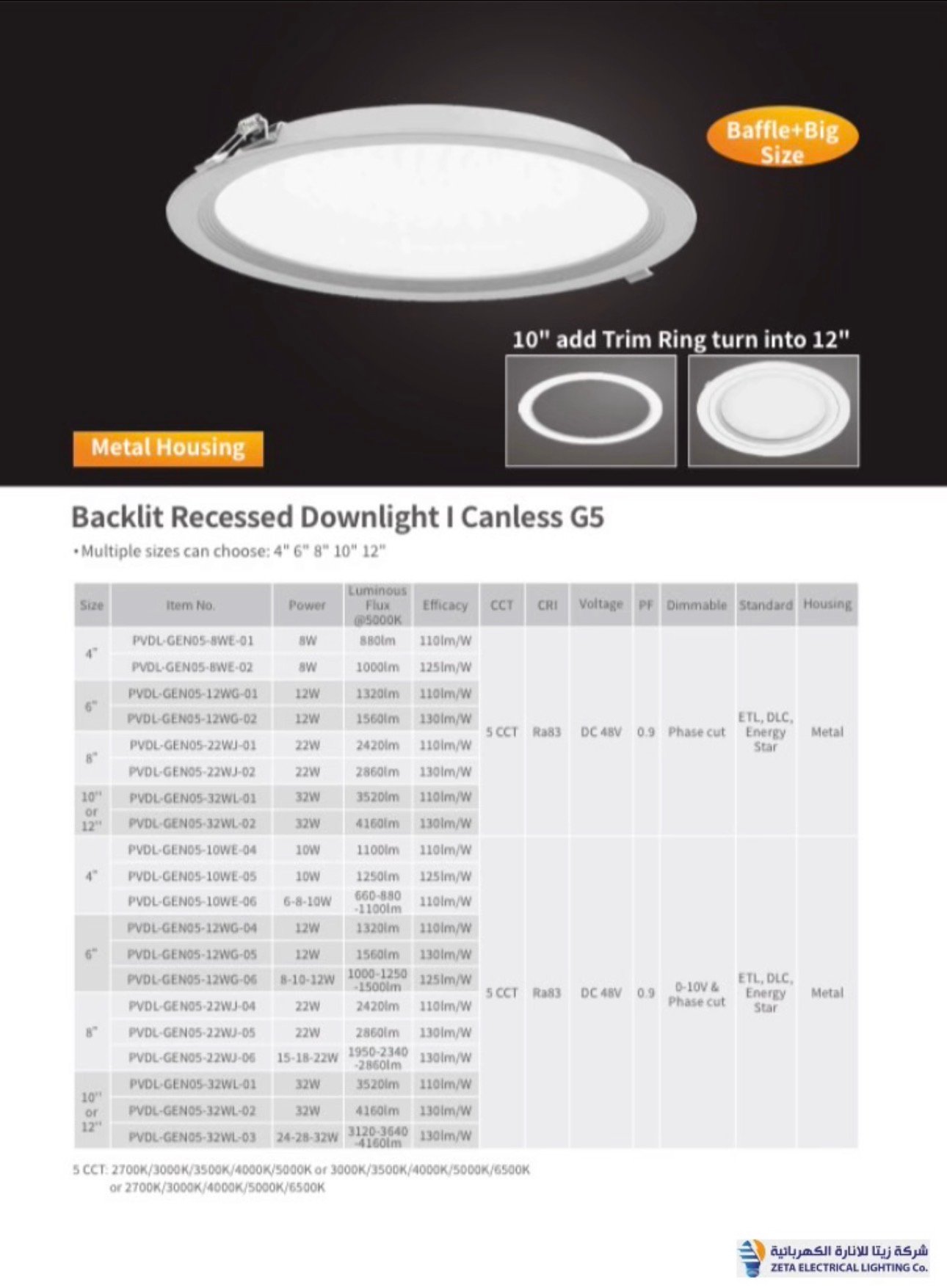 zeta 6/12/18/21/24/30W LED downlights Led recessed lights