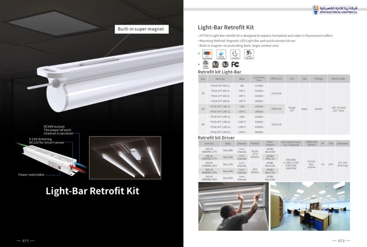 - PVTECH Light-Bar retrofit kit is designed to replace the ballast and tubes in fluorescent troffers